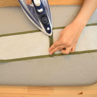 Turn the panels right side out and topstitch at 5 mm (3/16 in) from each seam.