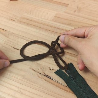 Take a 60 cm (24 in) length of cord. Thread it through the zipper pull and tie a knot.