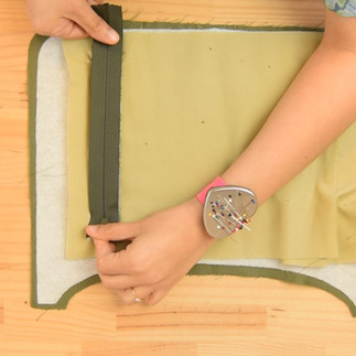 Pin the lining, outer fabric, and strap together.