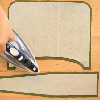 Place each interfacing piece on the wrong side of the corresponding fabric, except for the pocket openings.