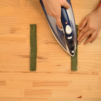 Fold it in half lengthwise, wrong sides together, and press to mark the fold.