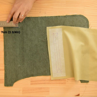 Take the interfacing intended for the zipped pocket openings along with the pattern.