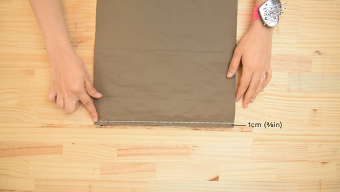 Place the top perimeter on the bottom perimeter right sides together and stitch each end 1cm from the edge.